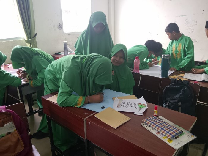 Manfaat lain yang diperoleh adalah melatih kreativitas, ketelitian, dan kemampuan menyampaikan pesan motivasi melalui bentuk huruf. Kolaborasi dalam kelompok juga memperkuat rasa kebersamaan dan kerja sama antar siswa.
