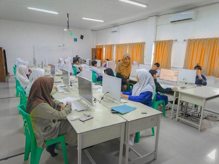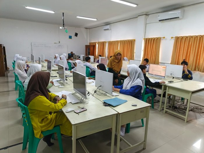 Pelaksanaan simulasi dan ujian resmi di MTsN 2 Kota Jambi langsung ditangani oleh tim dari MAN IC Jambi. Mereka bertugas mengatur teknis ujian, memastikan sistem berjalan lancar, serta memberikan arahan kepada peserta. Beberapa guru dan tenaga kependidikan MTsN 2 Kota Jambi turut mendampingi, membantu kelancaran administrasi, serta memastikan fasilitas madrasah siap digunakan.