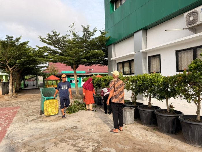 Selain mengurus berkas, tenaga kependidikan juga meluangkan waktu untuk membersihkan lingkungan madrasah. Halaman, ruang kelas, dan area sekitar madrasah ditata agar tetap rapi dan nyaman digunakan. Kegiatan ini dilakukan bersama-sama sehingga tercipta suasana kebersamaan yang hangat di antara para pegawai. Lingkungan yang bersih menjadi cerminan semangat Ramadan yang penuh keberkahan.