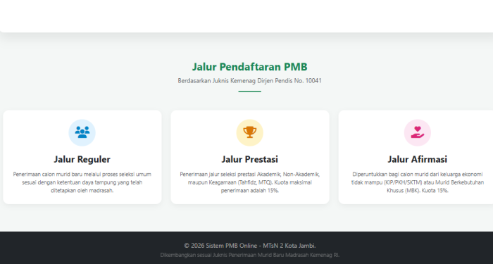 Kota Jambi (MTsN 2 Kota Jambi) - Hari pertama pembukaan pendaftaran murid baru MTsN 2 Kota Jambi pada Minggu, 1 Maret 2026 berlangsung dengan antusiasme luar biasa. Website resmi madrasah langsung diserbu oleh para orang tua yang mendaftarkan anaknya untuk menjadi murid baru. Lebih dari 200 pendaftar tercatat telah melakukan registrasi online dan mulai melengkapi berkas yang diminta untuk diunggah.