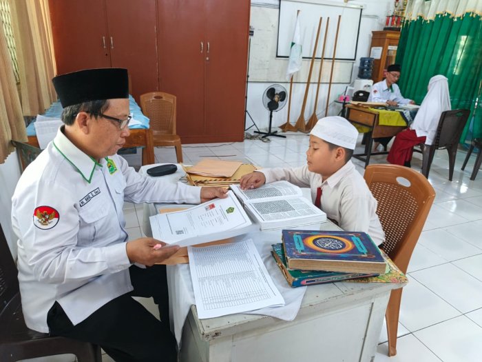 Tes keagamaan dilaksanakan di madrasah dengan pengawasan langsung dari panitia dan guru penguji. Setiap calon siswa diuji kemampuan membaca Al-Qur'an dengan benar, memperhatikan kelancaran, tajwid, dan adab membaca.