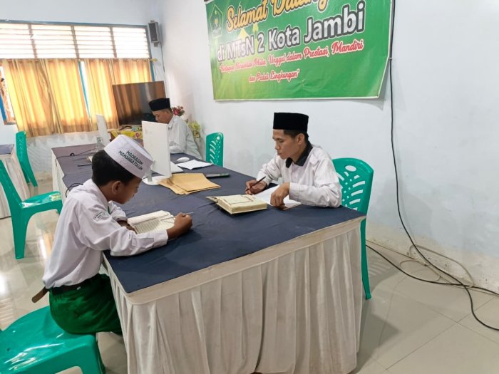 Kota Jambi (MTsN 2) - Penerimaan Murid Baru (PMB) MTsN 2 Kota Jambi tahun 2026 memasuki tahap seleksi penting dengan pelaksanaan tes keagamaan uji baca Al-Qur'an bagi calon siswa jalur reguler pada Senin (9/3/2026). Tes ini menjadi syarat utama sebelum peserta melanjutkan ke tahap akademik.