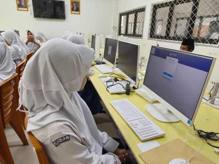 Pelaksanaan berlangsung di ruang laboratorium komputer dengan pengawasan proktor dan teknisi madrasah. Siswa tampak aktif mengikuti jalannya ujian, meskipun sempat menghadapi kendala jaringan internet.