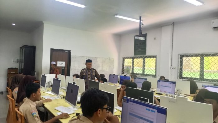 Pelaksanaan gladi bersih gelombang kedua difokuskan pada mata pelajaran Matematika. Sesi pertama dimulai pada pagi hari dengan pengawasan proktor dan teknisi sekolah, serta pemantauan langsung dari Kepala Madrasah (Kamad) yang hadir untuk memastikan jalannya kegiatan.