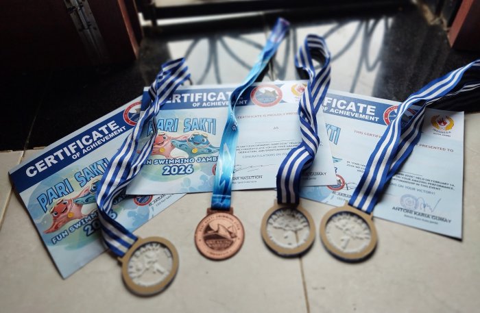 Kota Jambi (MTsN 2) - Prestasi membanggakan kembali ditorehkan oleh siswi berbakat MTsN 2 Kota Jambi. Khansa Widya Larasati, siswi kelas 7J, berhasil memborong empat medali sekaligus dalam ajang bergengsi "Lomba Pari Sakti Pemula Plus dan Fun Swimming Se-Kota Jambi 2026". Kompetisi ini diikuti oleh atlet renang se-Kota Jambi dan berlangsung sangat kompetitif.