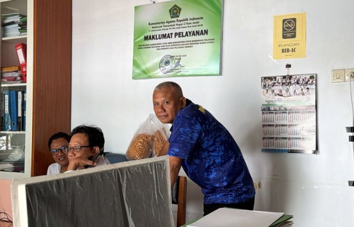 Kota Jambi (MTsN 2) - Suasana di kantor Tata Usaha MTsN 2 Kota Jambi tetap berjalan tertib pada Selasa (17/3/2026), meskipun sedang dalam masa Work From Anywhere (WFA) di bulan Ramadhan. Para tenaga kependidikan (tendik) hadir sesuai jadwal piket yang telah ditentukan, sehingga pelayanan administrasi tetap terjaga.