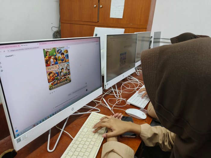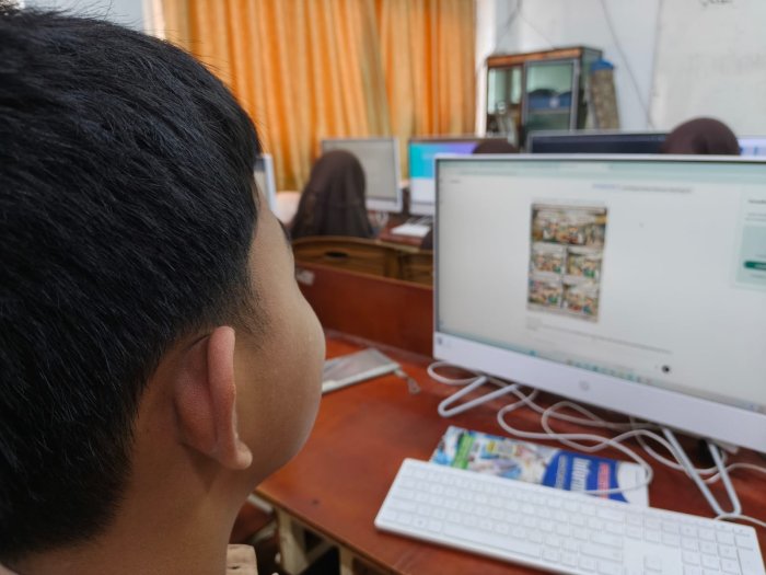 Kegiatan ini berlangsung pada Rabu (1/4/2026) di ruang lab komputer 1. Dalam kegiatan tersebut, setiap siswa bekerja secara individu, sehingga mereka dapat lebih bebas menuangkan ide dan kreativitas masing-masing. Dengan memanfaatkan perangkat komputer dan aplikasi berbasis AI, siswa merancang komik bertema pentingnya literasi membaca. Proses ini tidak hanya melatih keterampilan digital, tetapi juga menumbuhkan kesadaran akan budaya literasi.