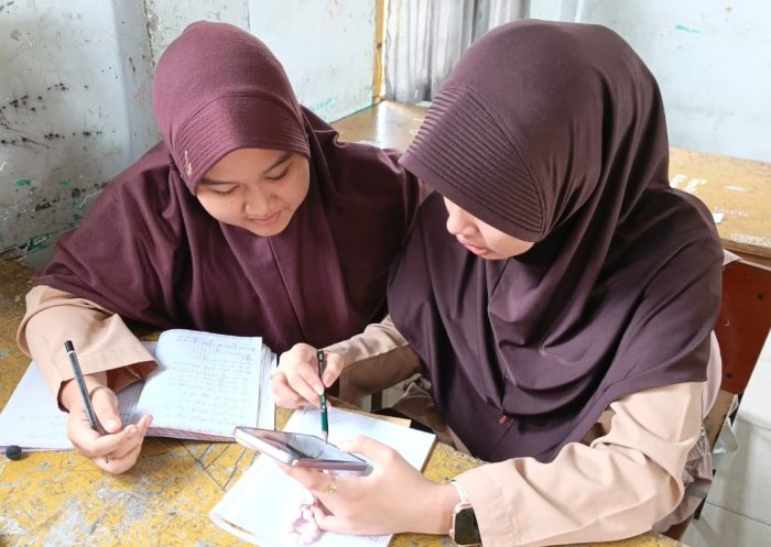 Setelah sesi pengerjaan soal selesai, kegiatan dilanjutkan dengan pembahasan bersama. Guru Wahid menjelaskan langkah-langkah penyelesaian, menekankan konsep-konsep penting, dan mengajak siswa berdiskusi. Metode pembahasan bersama ini membantu siswa memahami letak kesalahan mereka dan memperkuat pemahaman materi.