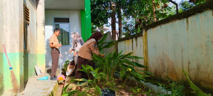 Kegiatan tersebut dipimpin langsung oleh guru pembimbing, Syarifah Aisyah, S.Pd. Ia mendampingi siswa selama proses gotong royong, mulai dari menyapu halaman, mencabut rumput liar, hingga menata ulang posisi tanaman toga. Seluruh proses dilakukan bersama-sama, mencerminkan nilai kebersamaan dan gotong royong.