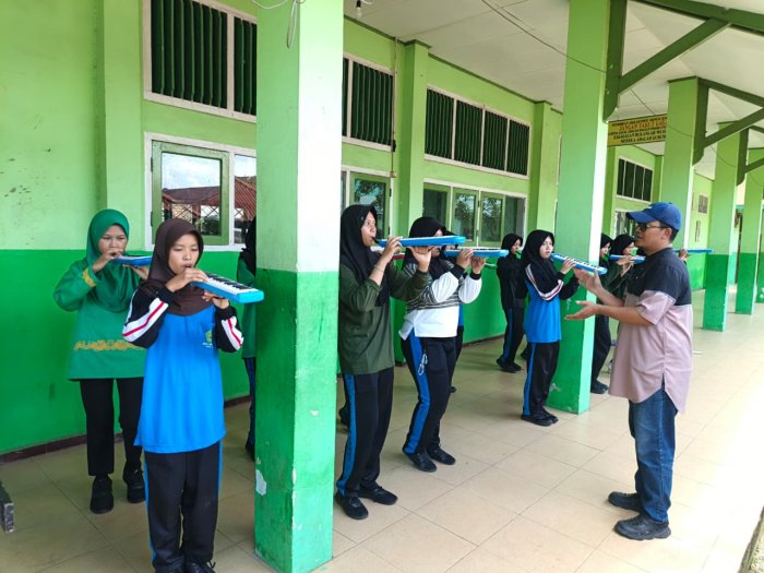 Kota Jambi (MTsN 2) - Siswa MTsN 2 Kota Jambi menggelar latihan drumband pada Jumat, 10 April 2026, dengan fokus pada materi lagu daerah Jambi berjudul Suap Tagantung. Kegiatan ini merupakan bagian dari upaya madrasah dalam melestarikan budaya lokal melalui seni musik, khususnya lagu-lagu tradisional daerah.