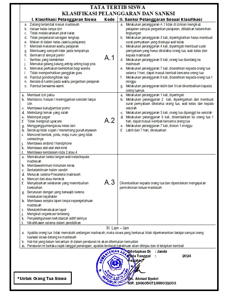 Tata Tertib Madrasah